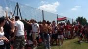 L’odore dell’erba bagnata si mischia con quello delle salamelle cotte ai baracchini. I fumogeni degli ultras per un attimo ricreano un’atmosfera novembrina. I canti, intervallati da qualche imprecazione. Le urla per richiamare l’attenzione di un giocatore. La stanchezza di rimanere per ore davanti ad un cancello sotto una cappa di caldo tipica di quest’epoca. Poi si alza un po’ di vento che offre sollievo e ricarica le energie. Rinnovando la voglia di vivere appieno un amore chiamato Milan.