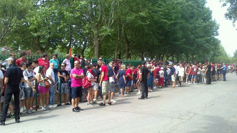 Ore 10,30 - Il vialone che porta all'ingreso principale di Milanello è già pieno di tifosi rossoneri