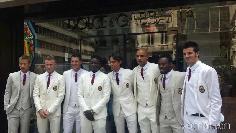 Dopo la presentazione della nuova seconda maglia Milan per la stagione 2014/2015 presso l’Adidas Store di New York, un gruppo di giocatori, insieme a Filippo Inzaghi, hanno visitato la boutique di Dolce & Gabbana. Ecco la foto (in evidenza), postata sul profilo Twitter ufficiale del Milan (@acmilan).