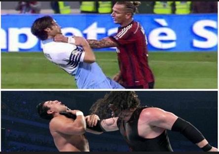 La dura reazione di Mexes nei confronti di Mauri ieri sera nel match tra Lazio e Milan ha scatenato l’ironia del web che ha prodotto una serie di sapienti fotomontaggi tutti da ridere.