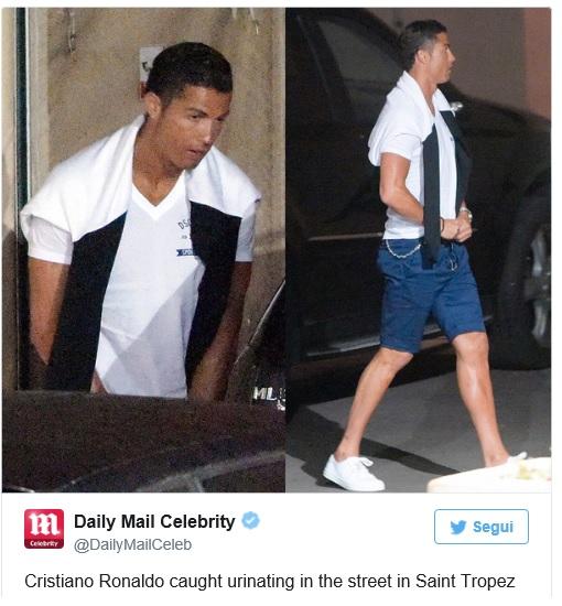 L’onere e l’onore di essere un campione mondiale: si è sempre sotto i riflettori ed ogni movimento viene osservato ed ingigantito. Ben lo sa Cristiano Ronaldo, in vacanza con gli amici a Saint Tropez che prova a comportarsi come un ragazzo qualunque con risultati poco soddisfacenti. Dopo aver imitato sulla spiaggia le buffe esultanze dopo i gol, è stato immortalato da un paparazzo mentre, all’uscita da un locale ha avvertito un bisogno fisiologico. Fare le pipì.