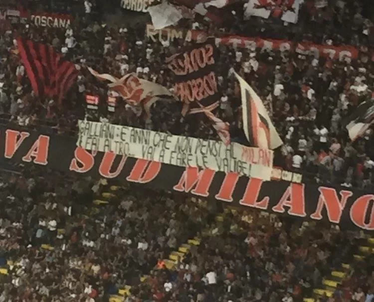 Durante Milan-Sassuolo, la Curva Sud ha esposto uno striscione con cui ha di nuovo criticato Adriano Galliani: “Sono anni che non pensi al Milan e fai altro. Vai a fare le valigie“.
