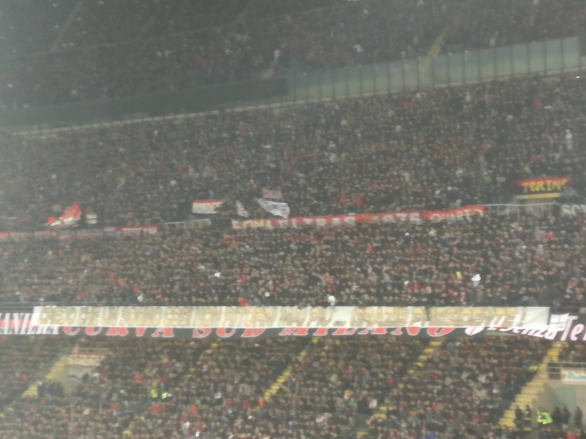 “Spero che un giorno così non ritorni mai più, grazie Presidente”, lo striscione esposto dai tifosi rossoneri all’inizio del derby. Un ringraziamento a Silvio Berlusconi per il quale quella di oggi potrebbe essere l’ultima stracittadina da patron del Milan.