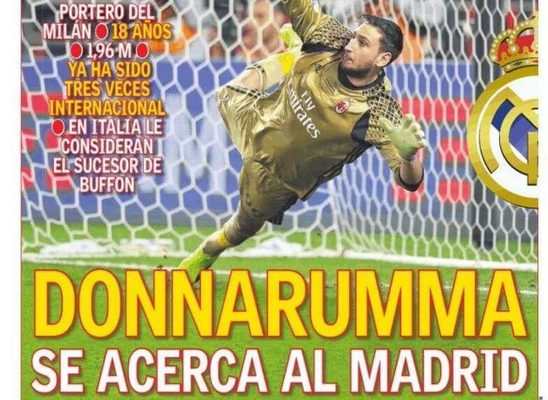 La notizia del mancato rinnovo col Milan di Gigio Donnarumma ha fatto il giro del mondo, e in particolar modo tappa in Spagna dove il Real Madrid è ad oggi l’indiziata numero 1 per aggiudicarsi le prestazioni del portierone classe ’99. I due quotidiani spagnoli, As e Marca, titolano in prima pagina la possibilità concreta di Gigio di vestire la maglia blanca e raggiungere la corte galactica di Zidane.