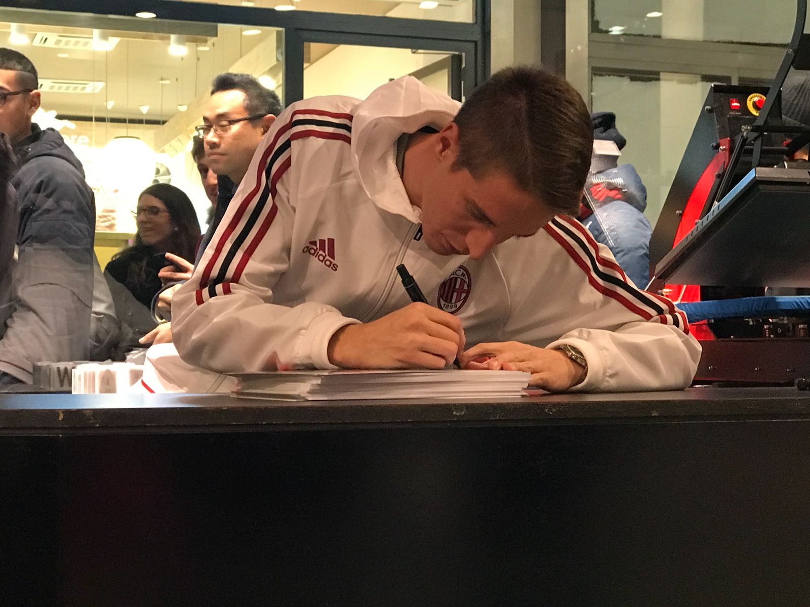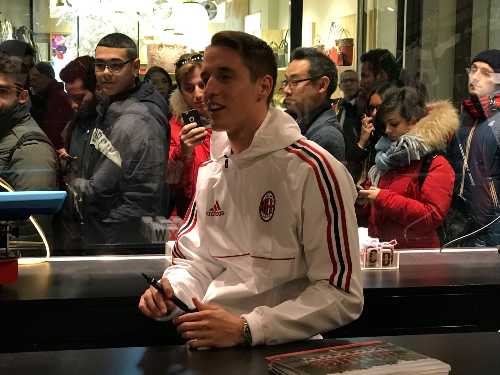 In questi minuti il terzino del Milan Andrea Conti è stato protagonista di un incontro coi tifosi rossoneri, a cui ha firmato autografi e scattato selfies presso il Milan Megastore di Galleria San Carlo, a due passi dal Duomo. Ecco le foto scattate dall’inviato di SpazioMilan.it!