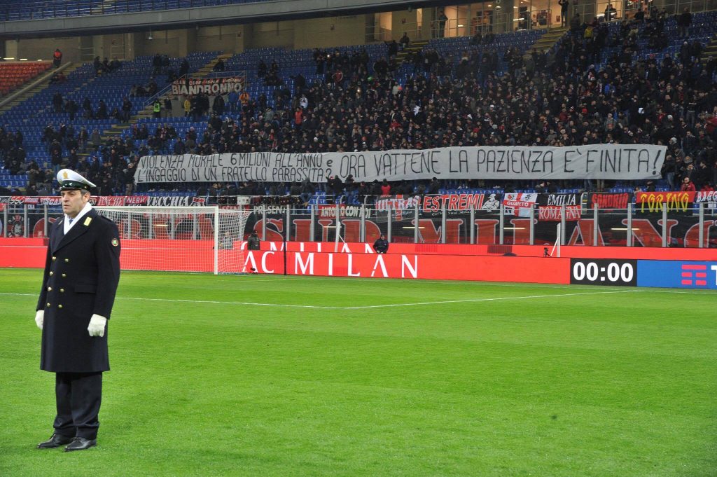 Si attendeva una reazione da parte del popolo rossonero alla riapertura del caso-Donnarumma. E la reazione è arrivata. Gigio è stato fischiato al suo ingresso in campo e all’annuncio del nome da parte dello speaker. Emblematico lo striscione dalla curva: “Violenza morale 6 milioni all’anno di ingaggio e un fratello parassita? Ora vattene: la pazienza è finita”.