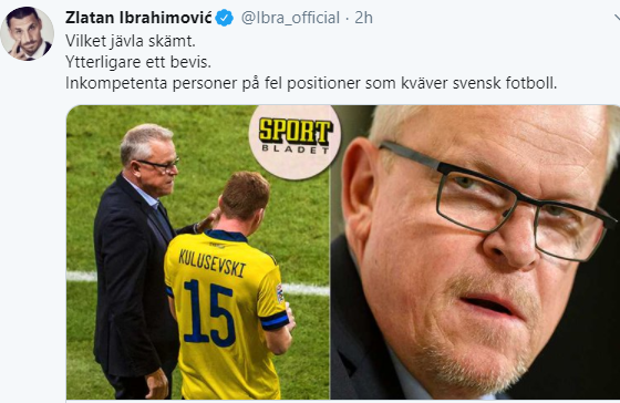 Queste le dichiarazioni dell’asso svedese sul proprio profilo Twitter: “Che brutto scherzo. Un’altra prova. Persone incompetenti nelle posizioni sbagliate che soffocano il calcio svedese”