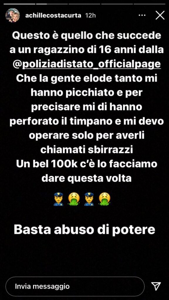 Achille Costacurta, figlio dell’ex campione del Milan ed opinionista Sky Alessandro “Billy” Costacurta, ha fatto una importante denuncia sfruttando il proprio profilo Instagram.