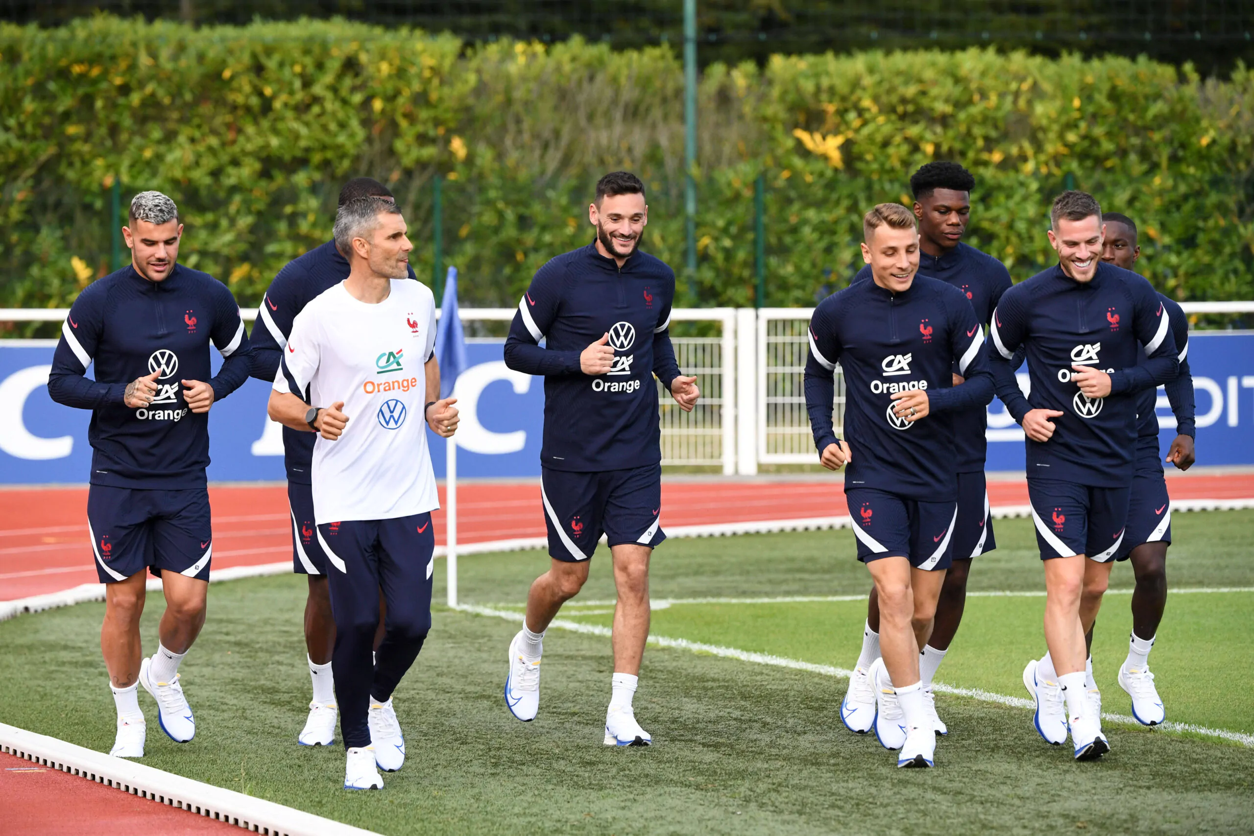 CYRIL MOINE PREPARATEUR PHYSIQUE FRANCE - THEO HERNANDEZ - 01 HUGO LLORIS FRA - 18 LUCAS DIGNE FRA - JORDAN VERETOUT FOOTBALL : Equipe de France - Conference de presse / Entrainement - Qualifications coupe du monde 2022 - 30/08/2021 AnthonyBIBARD/FEP/Panoramic PUBLICATIONxNOTxINxFRAxITAxBEL