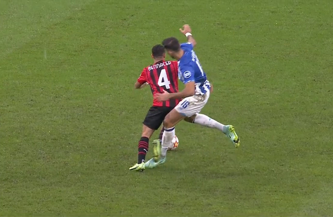 “Turpin ha sbagliato. Questo è un fallo da campo. Il giocatore del Porto prende prima la gamba del centrocampista rossonero, poi la palla. Questo è uno sgambetto”.