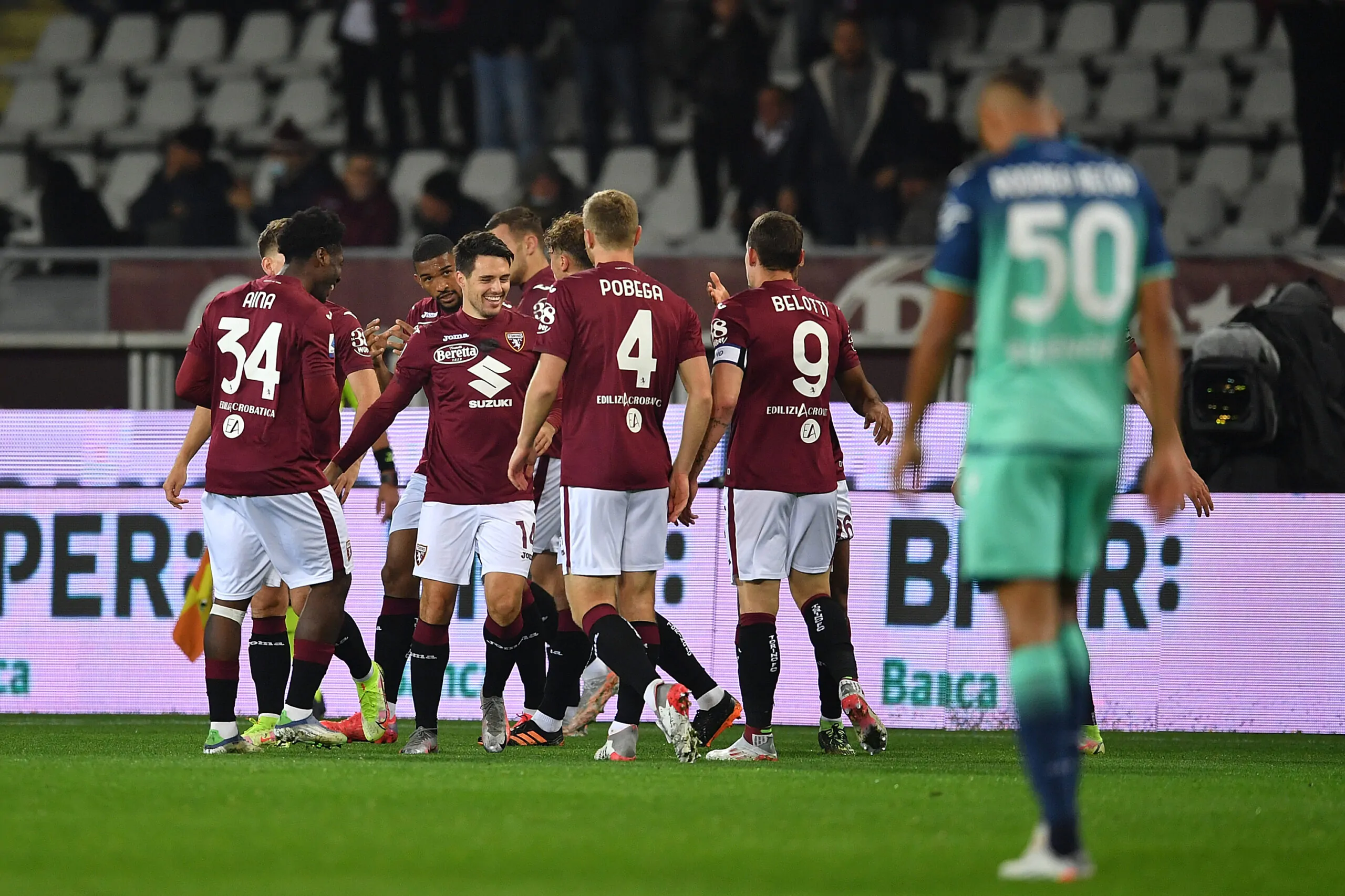 TURIN, ITALY - NOVEMBER 22: Josip Brekalo of Torino FC celebrates the opening goal with team mates during the Serie A match between Torino FC and Udinese Calcio at Stadio Olimpico di Torino on November 22, 2021 in Turin, Italy. (Photo by Valerio Pennicino/Getty Images)