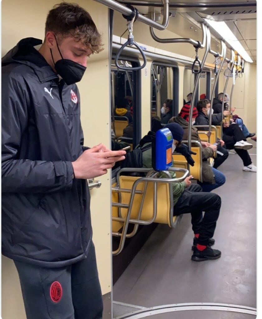 Il diciassettenne, come vediamo nella foto, è stato immortalato di ritorno dallo stadio in Tram. Una bella boccata di genuinità per un calcio che diventa sempre più show ed in cui si respira, come non mai, un certo distacco tra tifosi e calciatori. Una bella storia anche per papà Stefano, protagonista (secondario) del grande Milan di inizio anni ’90.