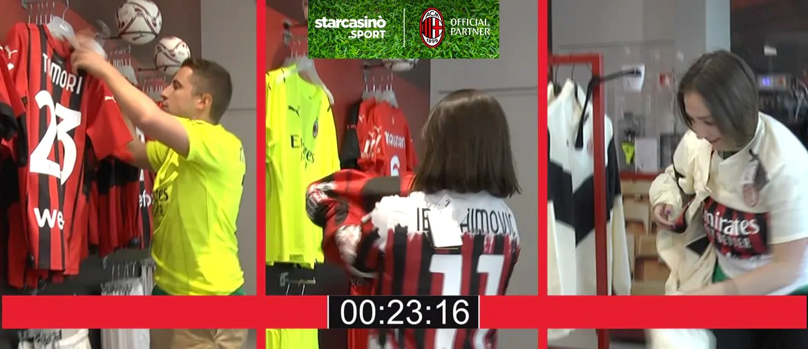 Davide, con 90 secondi, si è concentrato sulle maglie gara dei suoi giocatori preferiti: Mike Maignan e Fikayo Tomori. Poi si è accaparrato la storica maglia blu del 1995-1996 del Milan. Mihaela, in un solo minuto, ha indossato più capi di tutti e tre i partecipanti e si è lanciata sulla quarta divisa di questa stagione del suo idolo Zlatan Ibrahimovic. Eleonora, che aveva solo 30 secondi a sua disposizione, è riuscita a raccogliere le magliette dei due bomber Ibrahimovic e Giroud e il training kit.