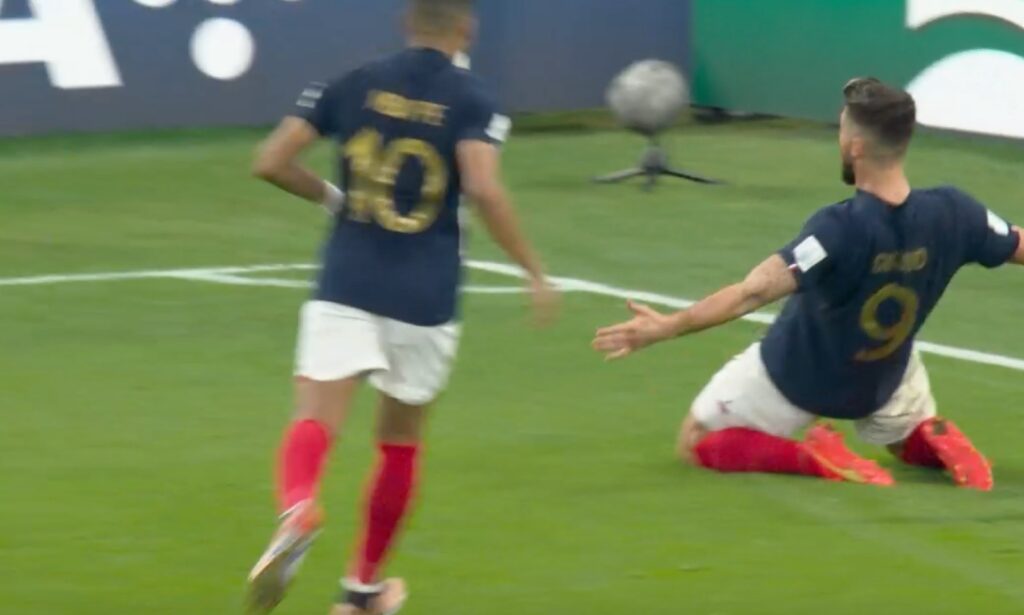 Olivier Giroud ha segnato il gol del vantaggio della Francia contro la Polonia, grazie all’assist di Mbappé.