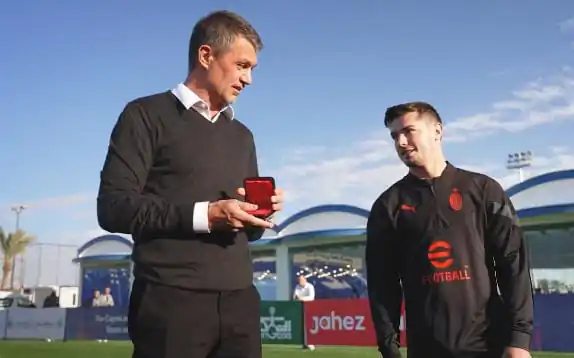Nella giornata odierna, durante la rifinitura del Milan in vista della Supercoppa che si giocherà domani sera a Riyad contro l’Inter, Brahim Diaz, trequartista rossonero in prestito dal Real Madrid, ha ricevuto un premio speciale direttamente dalle mani di Paolo Maldini.