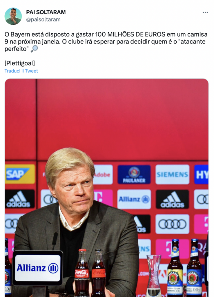 “Il Bayern è disposto a spendere 100 MILIONI DI EURO per una maglia numero 9 nella prossima finestra. Il club aspetterà per decidere chi è l’attaccante perfetto”.