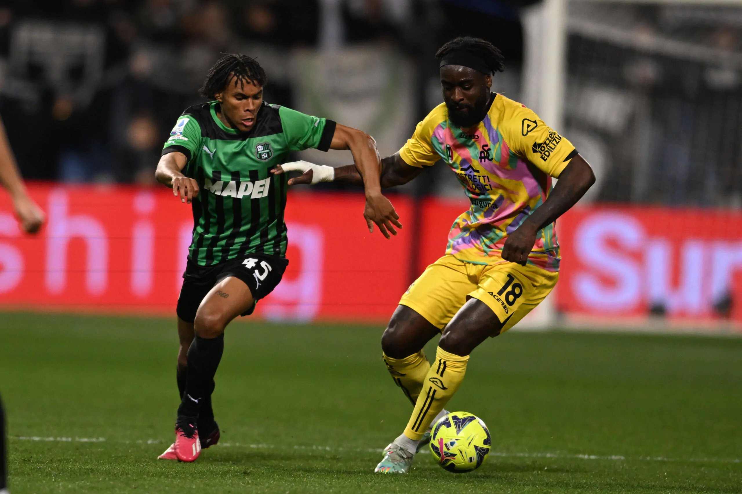 Armand Lauriente SassuoloM Bala Nzola Spezia during the Italian Serie A match between Sassuolo 1-0 Spezia at Mapei Stadium on March 125, 2023 in Reggio Emilia, Italy. Noxthirdxpartyxsales PUBLICATIONxNOTxINxJPN 213674360